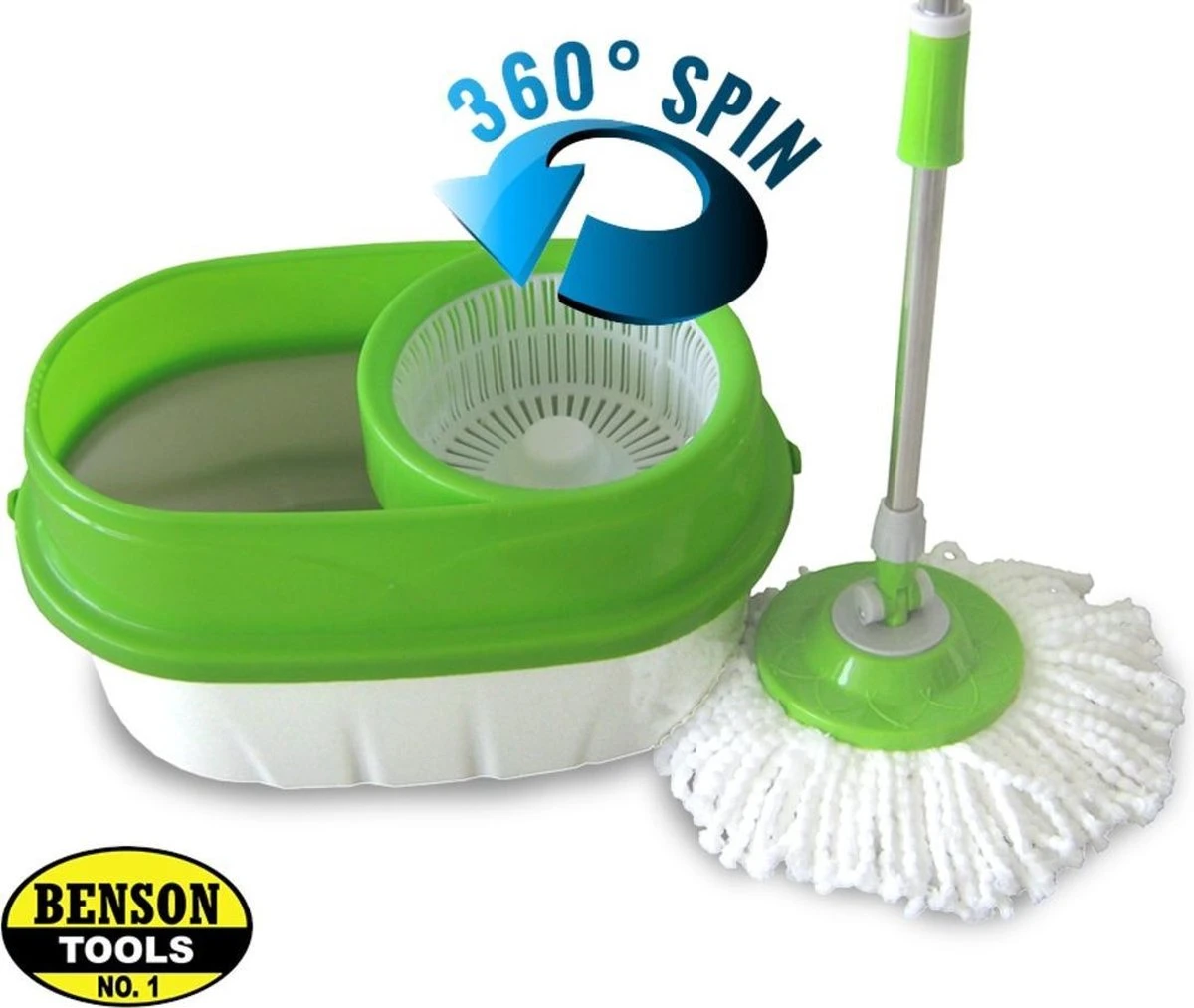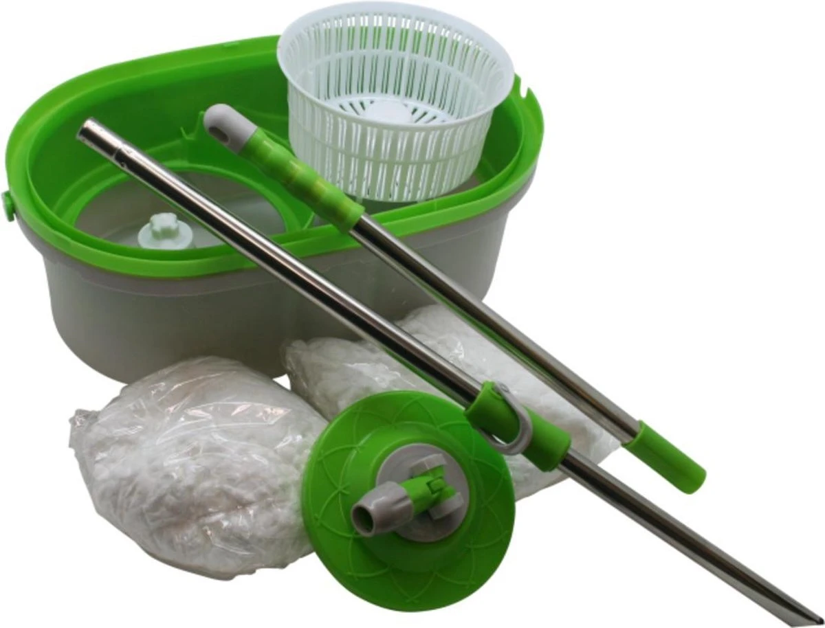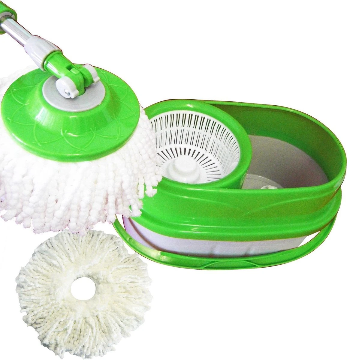 Maar het beste van de Whizz Magic Mopร is de in de steel ingebouwde spinner. steel in de emmer en de supersnel draaiende spinner dwingt het overtollige water uit de kop. U kunt uw vloer dus schoonmaken zonder plassen water of druppels achter te laten! Het vervangen van het mophoofd is erg eenvoudig.