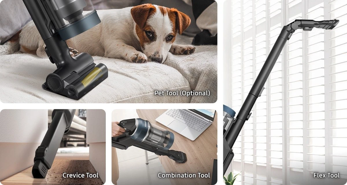 Met de verschillende borstel accessoires is er voor elke ondergrond de juiste borstel aanwezig voor het meest optimale schoonmaakresultaat. Maak bijvoorbeeld van je stofzuiger een gemotoriseerde dweilborstel met de Samsung Spray Spinning Sweeper.