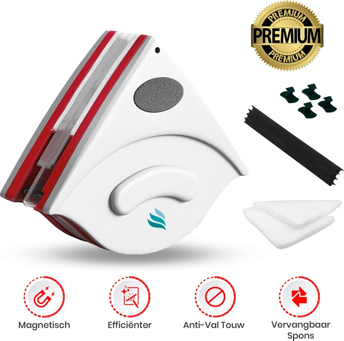 Pluspunten: Efficiรซnt en gemakkelijk schoonmaken Compact driehoekig ontwerp Krachtige neodymium magneten (pas op uw vingers) Bespaar tijd en geld op de glazenwasser Inclusief 2 extra sponsjes Inclusief 4 extra verbindingsdopjes Anti-valtouw Geschikt voor dubbelglas (15-24 mm)
