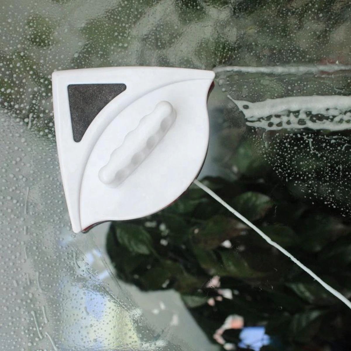 De driehoekige magnetische ramenwasser is gemaakt van stevig materiaal en heeft een compact ontwerp. Dankzij de krachtige neodymium magneet kunt u met dit apparaat uw ramen van binnenuit schoonmaken. U kunt gemakkelijk een groot oppervlak van het raam reinigen en het kost niet veel tijd. De ramenwasser is streep- en krasvrij dankzij de anti-kras rubberen strips.