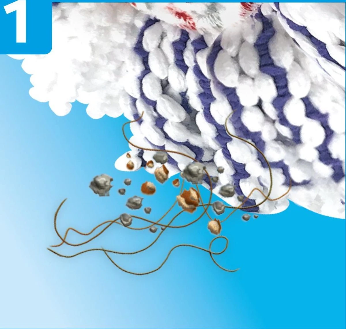 De 3in1 vervanging wordt voornamelijk gekenmerkt door zijn grote reinigingsvermogen. De mop verwijdert tot 99% van de bacteriรซn* op uw vloer en dat met water alleen. Maak in alle veiligheid schoon, zonder gebruik te maken van reinigingsmiddelen of agressieve chemische producten. De grote reinigingskracht wordt verkregen dankzij de innoverende combinatie van franjes in microvezels en een centrale pad die zelfs het meest hardnekkige vuil verwijdert.* Verwijdert E. coli en staphylococcus aureus van harde en tegelvloeren, getest door een onafhankelijk laboratorium